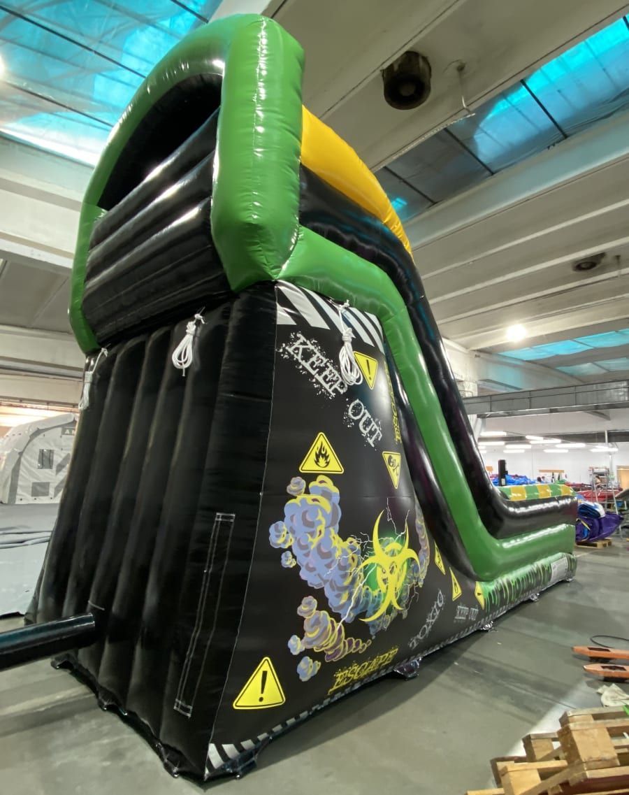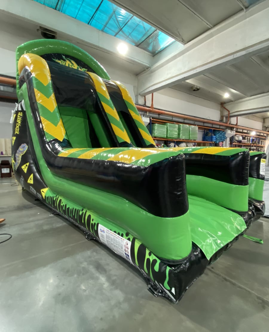 Are you ready to take your event to the next level? Our 20ft Green and Black Toxic Rush Slide is the ultimate choice for those seeking an adrenaline-packed experience. Standing tall at 20 feet, this striking slide in vibrant green and black is designed to captivate and thrill attendees of all ages.