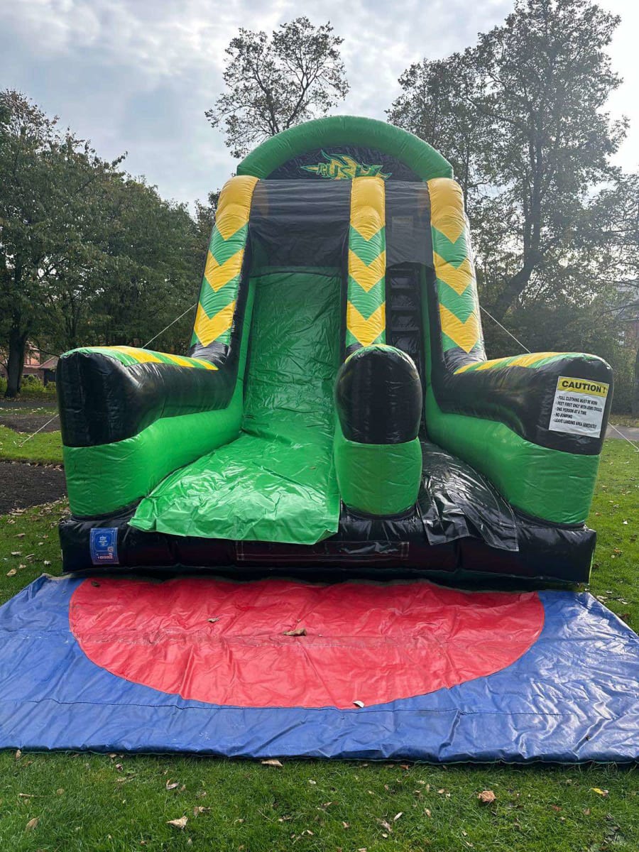 Whether you are hosting a Family fun day, a corporate event, or a community festival, our 20ft Green and Black Toxic Rush Slide promises to deliver unparalleled fun and excitement. Our dedicated team ensures timely delivery and professional setup, allowing you to focus on enjoying the event.